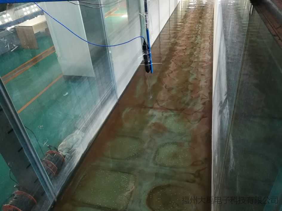 在做為標定測試的現(xiàn)場,我司盧工在寬度1.6m,高度2m,長度約為50m的渠道內(nèi)不停的忙碌著,把我們的新型多普勒流量計探頭,常規(guī)型多普勒流速儀,單波束多普勒剖面流速儀一一固定在指定的測試位置,海洋局計量中心的標定測試人員稱贊盧工做事細致認真,凸顯專業(yè)!現(xiàn)場一片歡聲笑語。