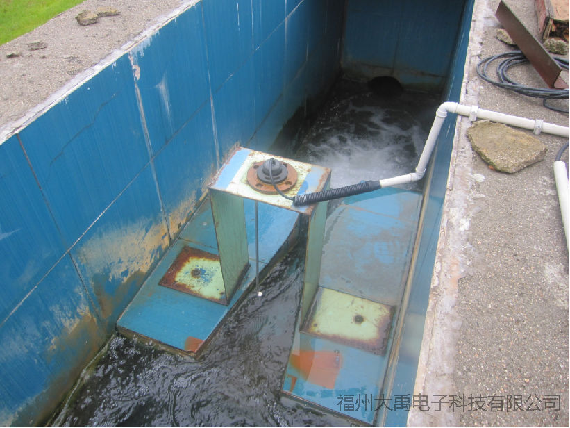 成都郫都區(qū)團(tuán)結(jié)鎮(zhèn)污水處理廠,超聲波液位差計(jì)現(xiàn)場(chǎng)