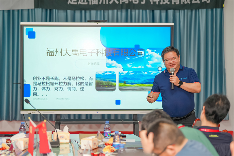 交流會(huì)上,大禹電子的總經(jīng)理杜雪梅女士,以熱情洋溢的致辭,為活動(dòng)拉開了序幕。她用一系列樸實(shí)無華的詞匯,向大家介紹了她眼中的上官董事長:一個(gè)實(shí)事求是、知行合一的實(shí)干家;一個(gè)謙遜低調(diào)、開放包容的領(lǐng)導(dǎo)者;一個(gè)持續(xù)學(xué)習(xí)、不斷創(chuàng)新的探索者;一個(gè)樂于分享、與時(shí)間為友的長期主義者。杜總還特別強(qiáng)調(diào)了上官董事長的非凡遠(yuǎn)見和深厚技術(shù)功底,稱贊他不僅以卓越的洞察力引領(lǐng)企業(yè)航向,更以其堅(jiān)實(shí)的專業(yè)知識(shí)和技能,為企業(yè)的技術(shù)創(chuàng)新和行業(yè)發(fā)展奠定了堅(jiān)實(shí)的基礎(chǔ)。她甚至還動(dòng)情地向上官董事長致敬,稱他不僅是大禹電子的靈魂,更是中華民族的脊梁和驕傲。