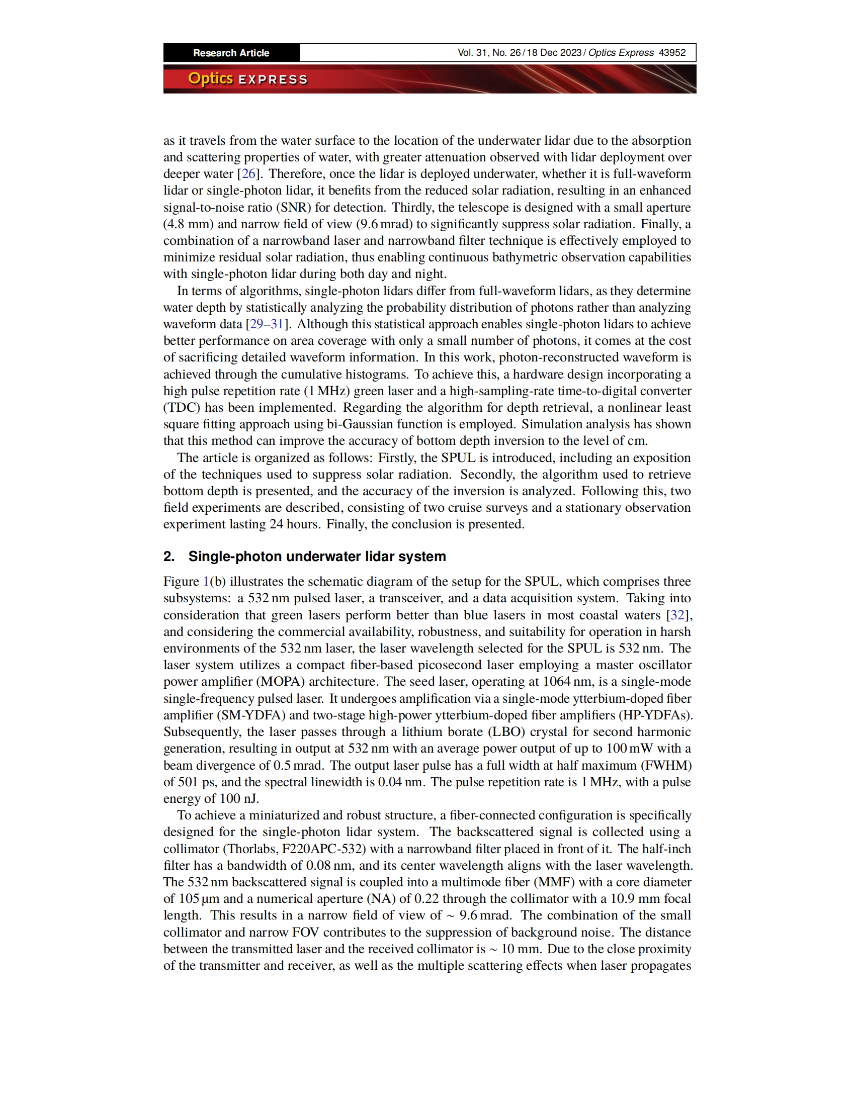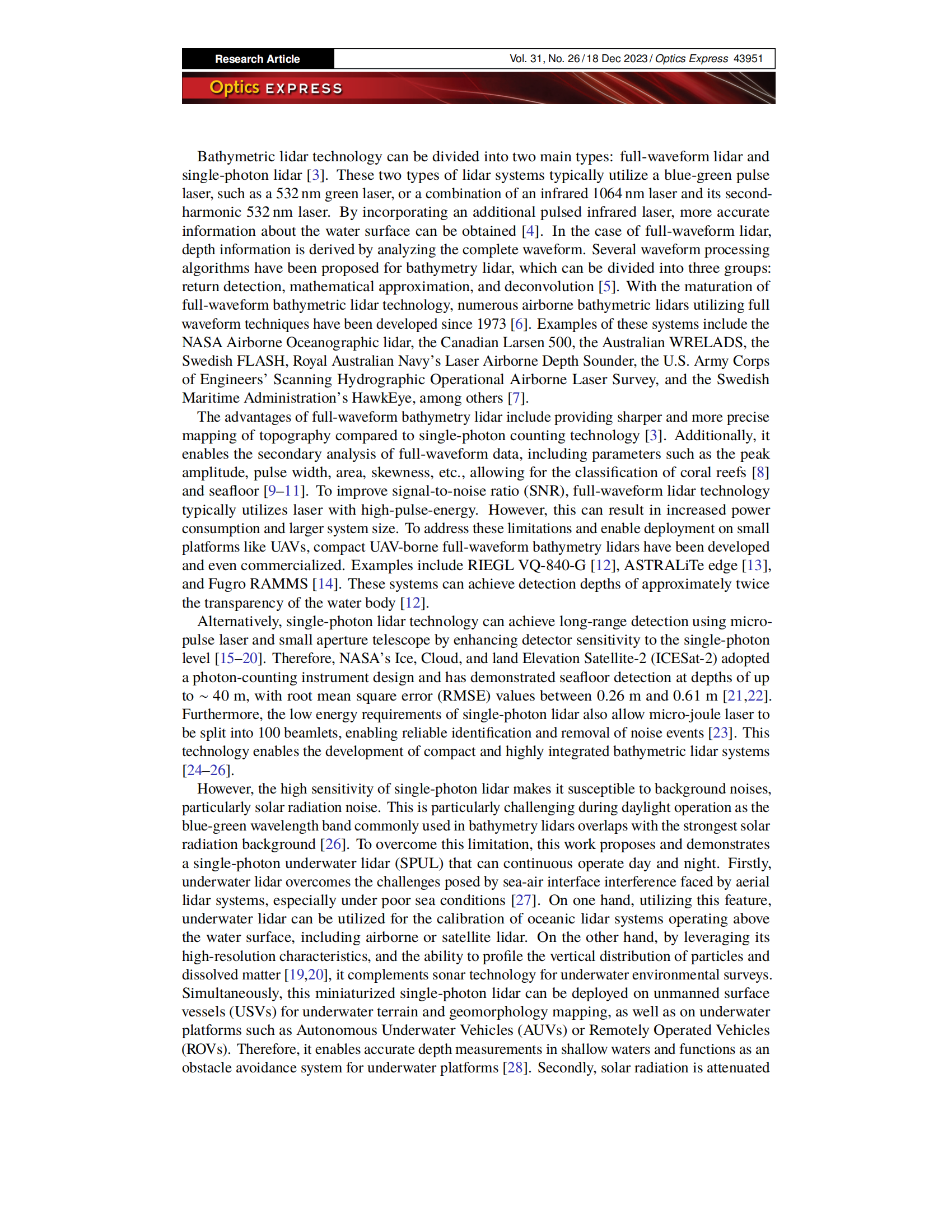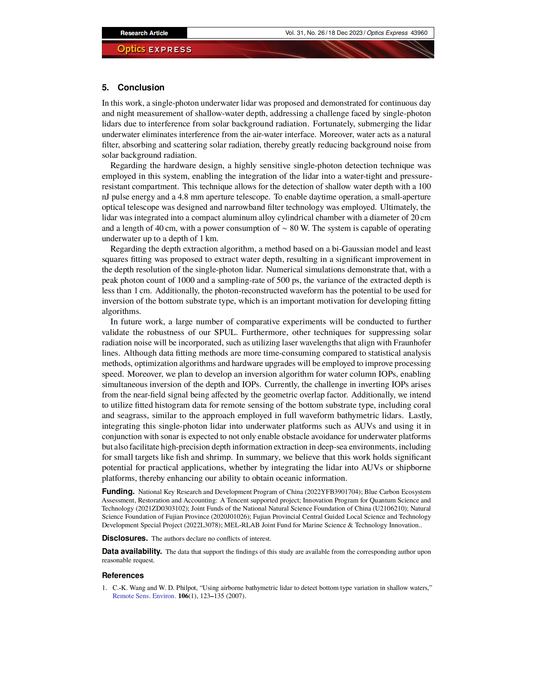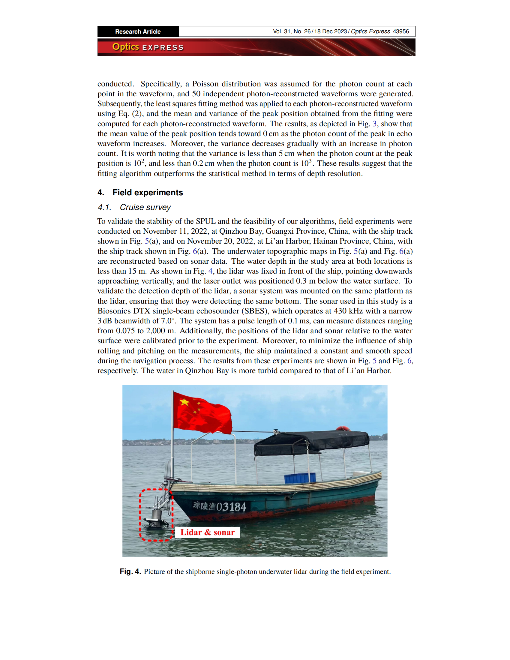 廈門大學(xué)上官明佳教授發(fā)表于美國國家光學(xué)雜志的文章,里面用了福州大禹電子的聲吶測試數(shù)據(jù)和他的水下測距激光雷達(dá)進(jìn)行互相驗(yàn)證。